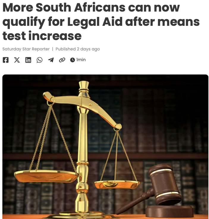 Legal Aid South Africa has increased the income and asset thresholds for its Means Test, making it easier for more people to qualify for legal aid.