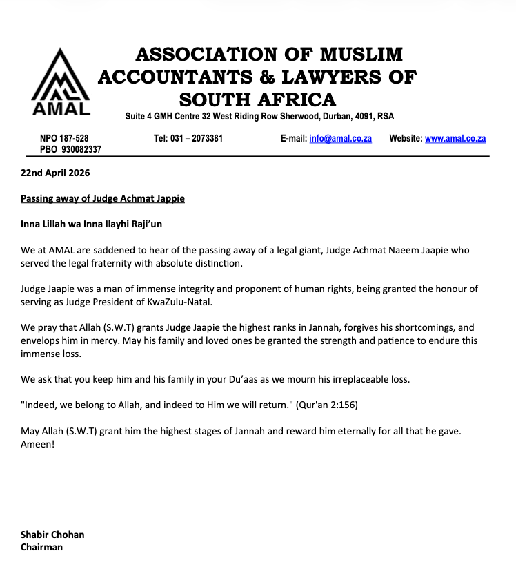 For a nominal annual fee of R300, become a member of AMAL and experience a community that supports your professional journey while staying true to your faith.