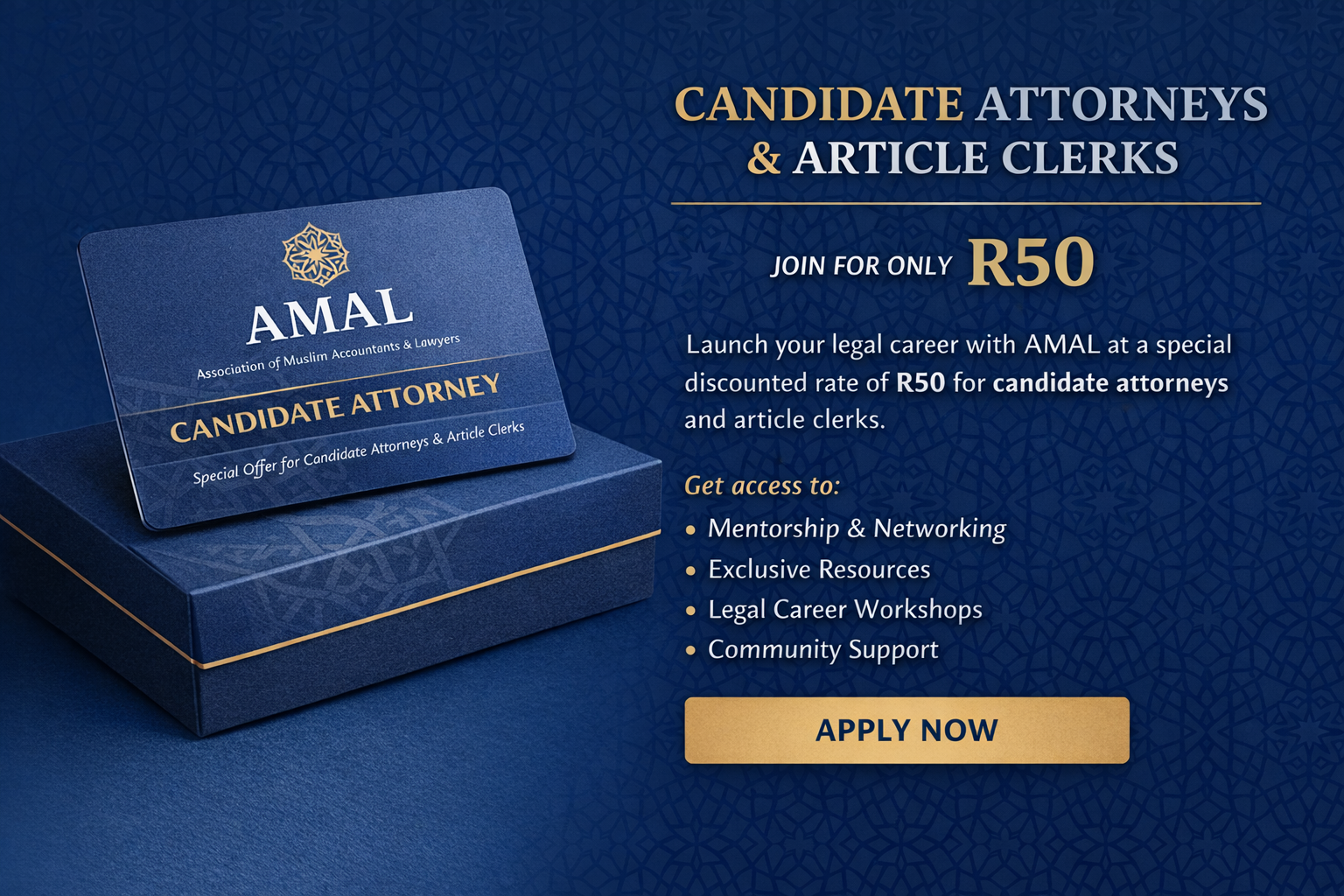 The Association of Muslim Accountants & Lawyers of South Africa (AMAL) offers a special membership designed specifically for Candidate Attorneys and Article Clerks who are beginning their professional careers.